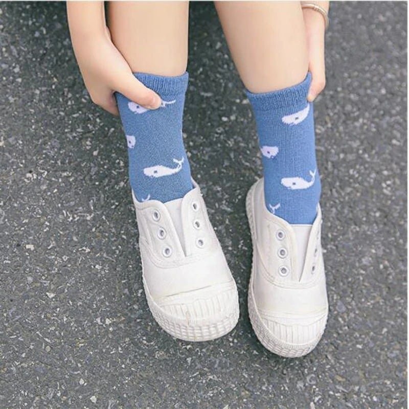 Ces chaussettes baleine enfant transforment les petits pieds en aquarium coloré avec leurs adorables motifs de baleines qui semblent nager joyeusement sur chaque chaussette.
