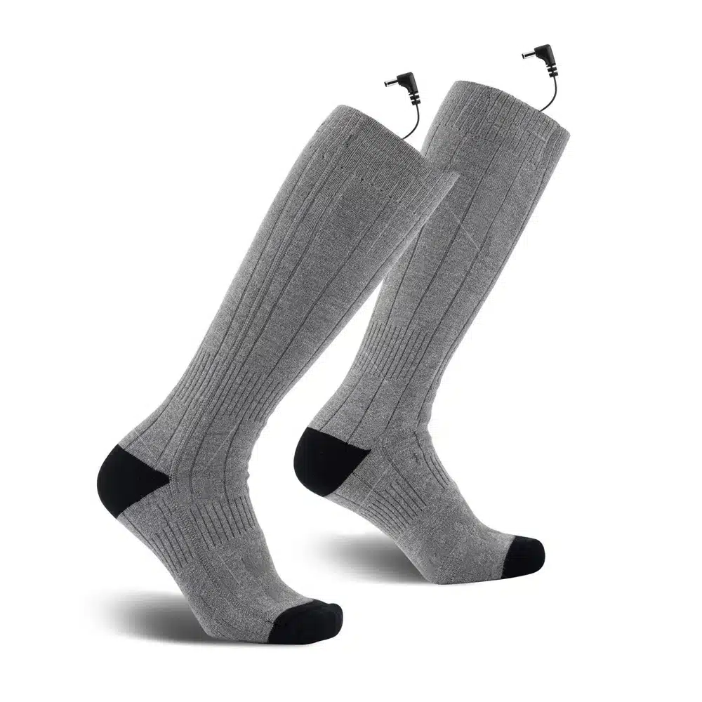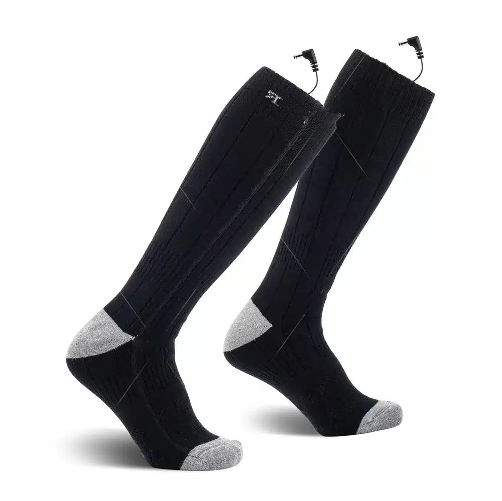 Deux batteries externes incluses (2200 mAh), une pour chaque chaussette, pour alimenter la chauffe sans contrainte de prise. Batterie lithium 3,7 V pour une énergie légère et stable dans le temps. Connexion simple au câble dédié qui se range dans la petite poche prévue sur la tige. Avec les chaussettes chauffantes, vous partez équipé dès l’ouverture de la boîte.