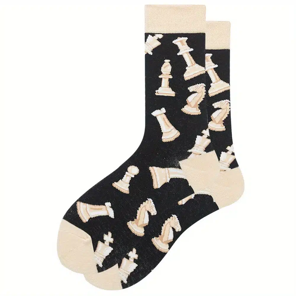 Un échiquier miniature qui habille vos pieds avec élégance. Ces chaussettes aux pièces blanches sur fond noir révèlent votre intelligence stratégique à chaque pas.