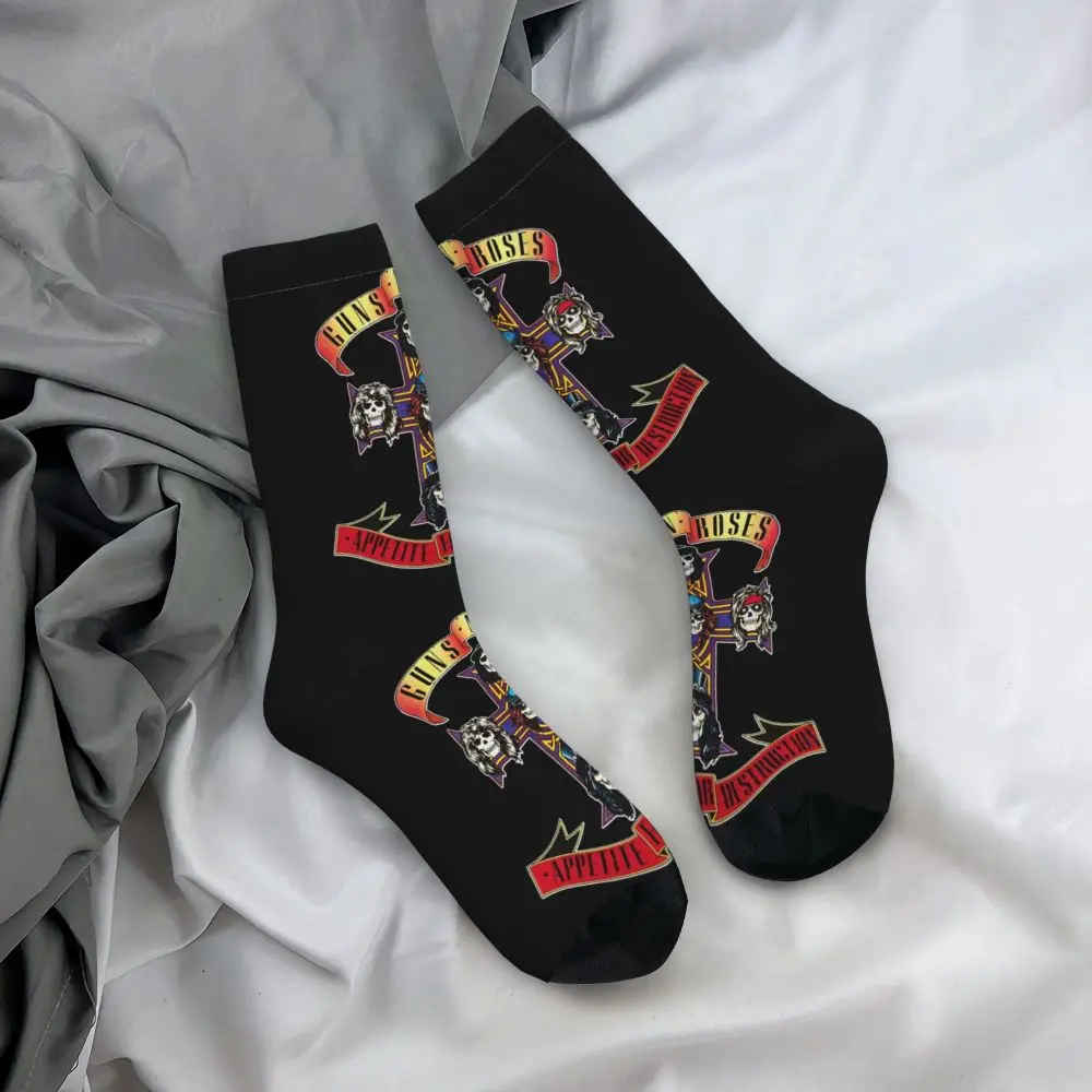 L’esprit rebelle de Gun N’ Roses s’invite à vos pieds. Ces chaussettes montantes aux motifs iconiques transforment votre style en véritable statement rock authentique.