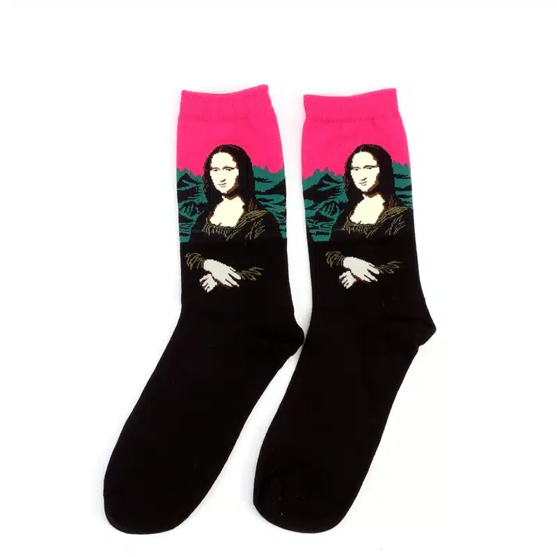 Ces chaussettes “La Joconde” Léonard de Vinci reproduisent fidèlement le chef-d’œuvre de la Renaissance sur vos pieds. On y retrouve le portrait iconique de Mona Lisa dans ses moindres détails, de son sourire énigmatique à ses mains délicatement posées.