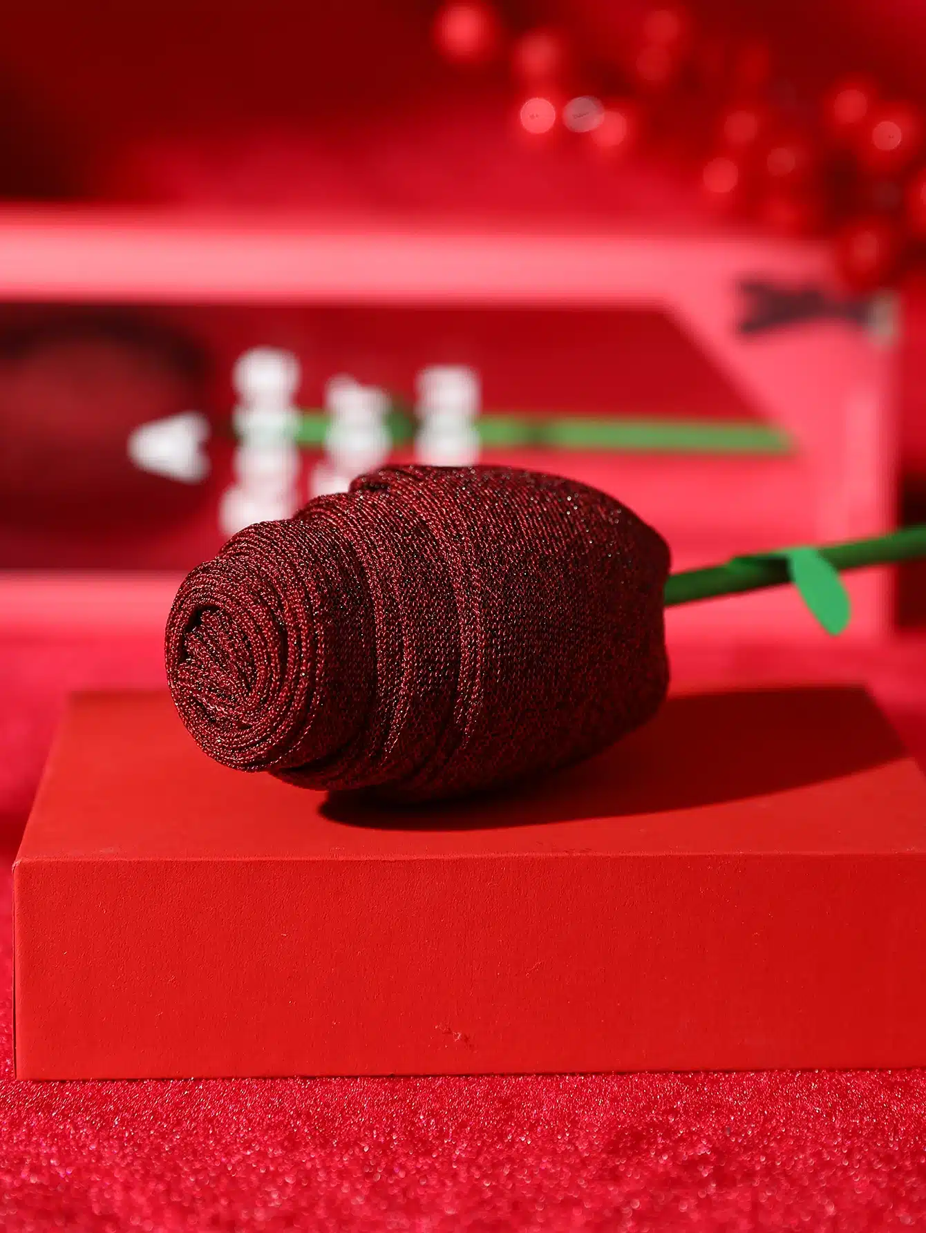 Ces chaussettes Saint Valentin arborent une teinte rouge profonde et chaleureuse qui évoque immédiatement l’amour et la passion.