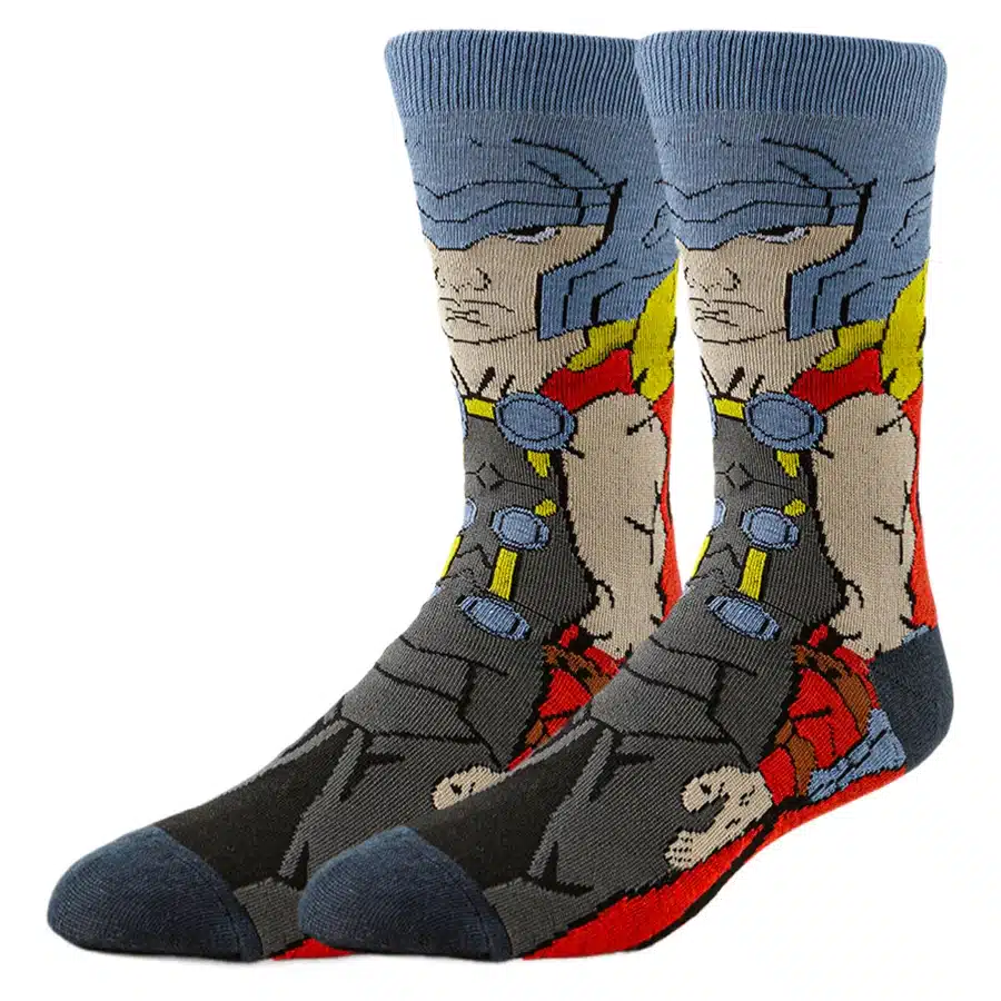 Les motifs se déploient avec une précision remarquable : chaque détail du costume de Thor est fidèlement reproduit, des ornements de son armure aux nuances subtiles de son visage. Cette impression haute définition transforme chaque chaussette en véritable œuvre d’art portable.